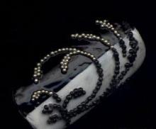 -Необходимые материалы: черный лак,основа, серебристая фольга, бульонки,закрепитель.