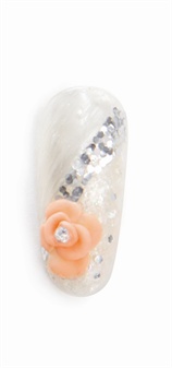 4. Сделать и прикрепить объемную розу персикового цвета (или готовый 3D цветок на ваш выбор, который вы приглядели), как показано на рисунке. Закрепить верхним слоем.